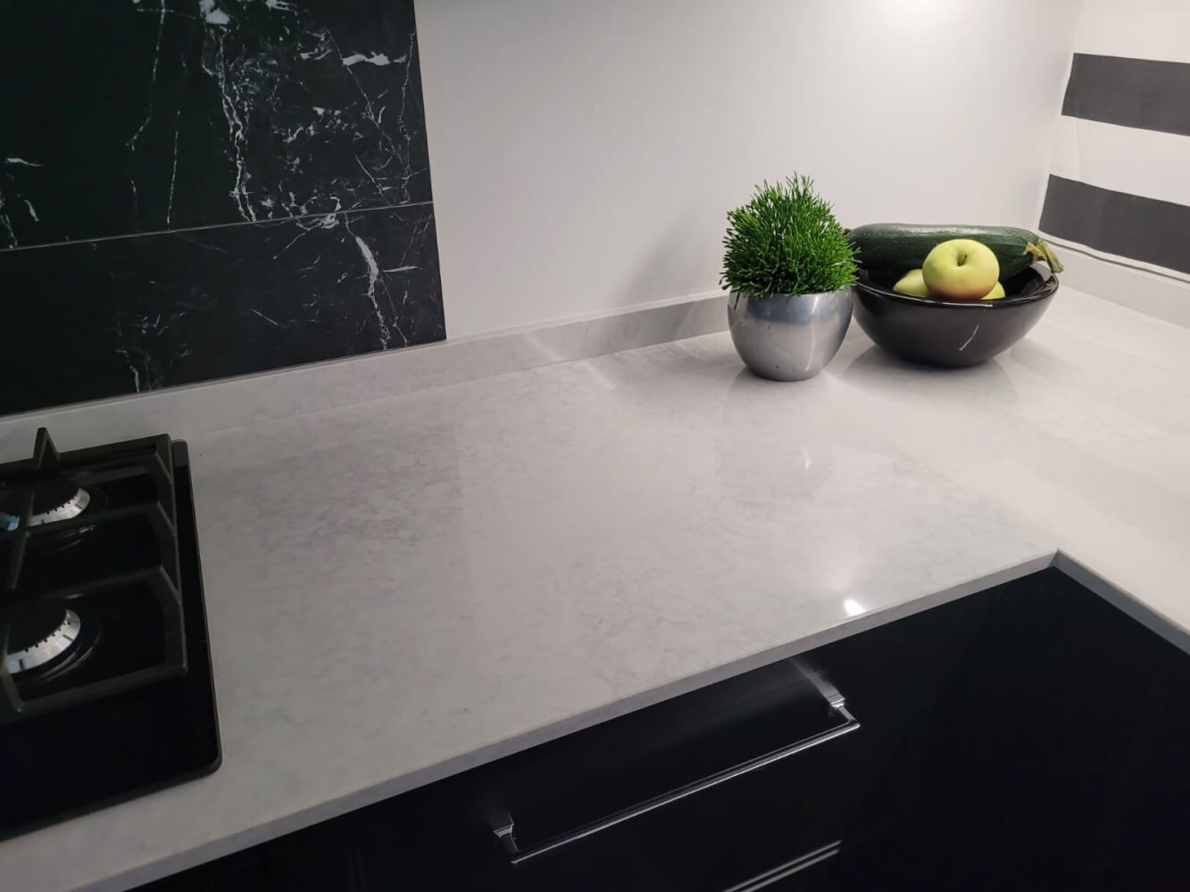 - Estetică deosebită: Cuarțul compozit vine cu o varietate de modele și culori, de la imitații de piatră naturală la tonuri moderne, uniforme. Indiferent de stilul bucătăriei tale, vei găsi o variantă care se potrivește perfect.