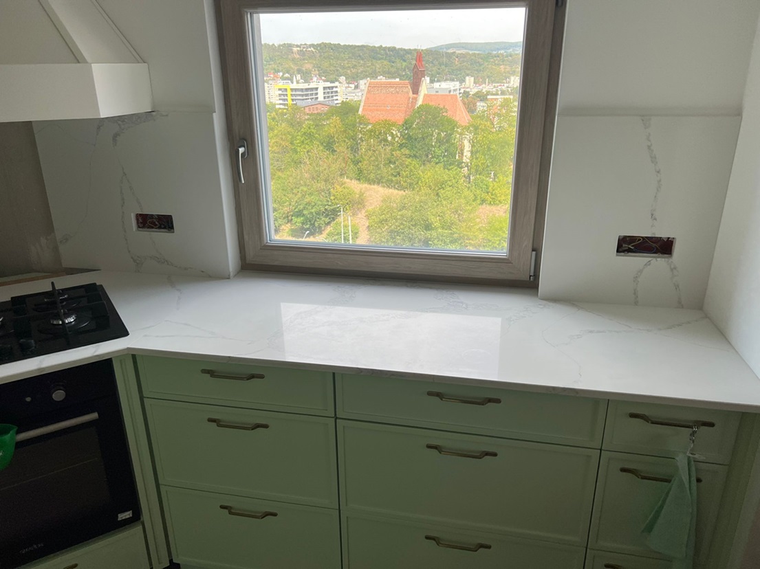 - Estetică deosebită: Cuarțul compozit vine cu o varietate de modele și culori, de la imitații de piatră naturală la tonuri moderne, uniforme. Indiferent de stilul bucătăriei tale, vei găsi o variantă care se potrivește perfect.