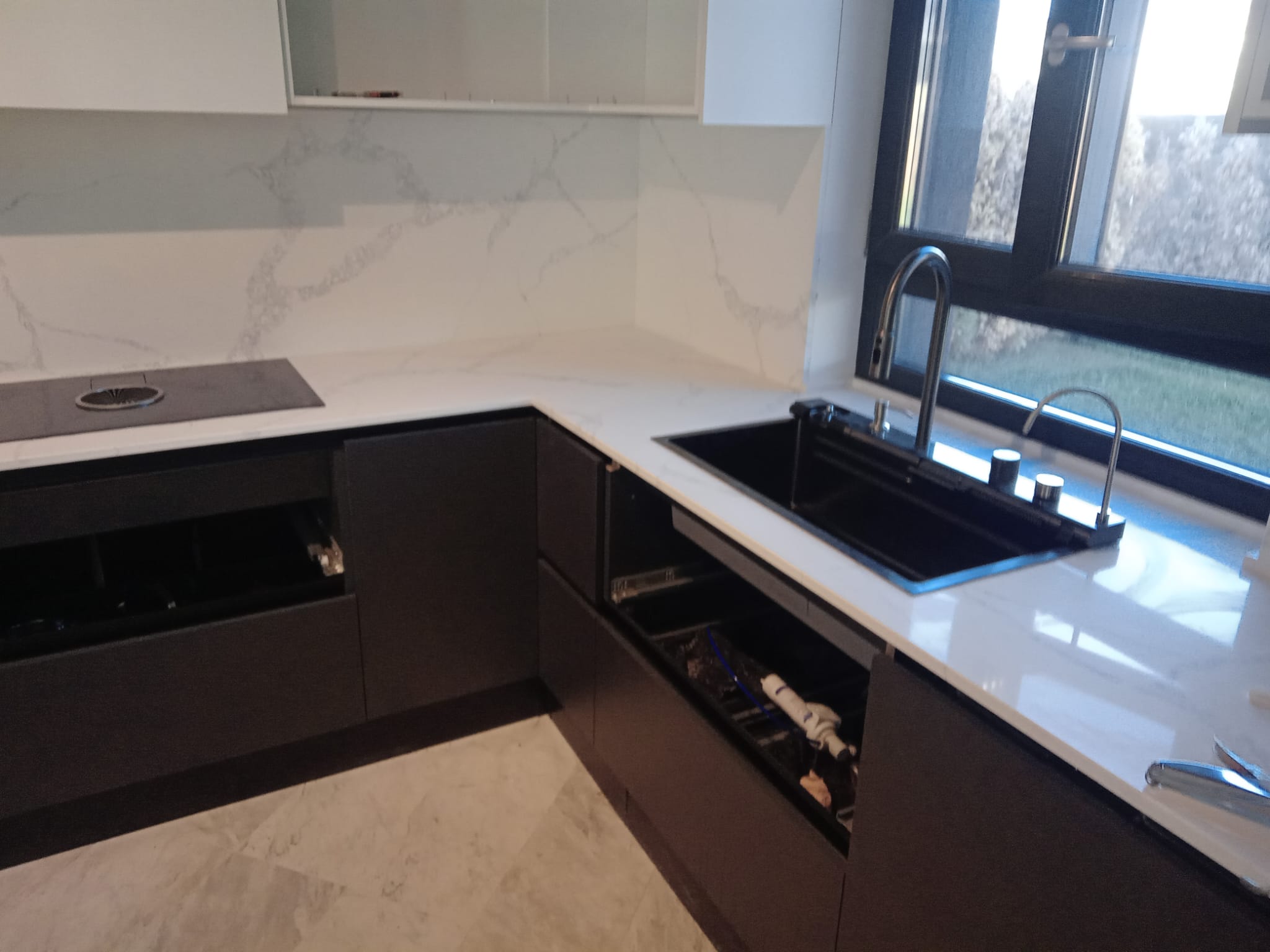 Executăm blaturi de bucătărie din Cuarț de 2 cm și alte materiale de compozit. Ne ocupăm de toate etapele: de la măsurători precise și personalizarea dimensiunilor, până la realizarea decupajelor pentru chiuvetă și plită și finisarea perfectă a marginilor.